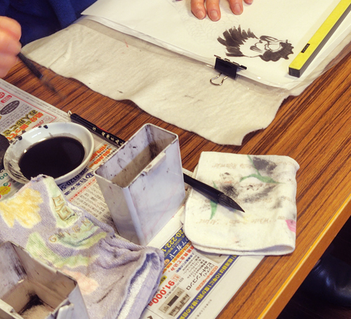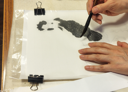 若冲の模写で「筋目描き」の練習。